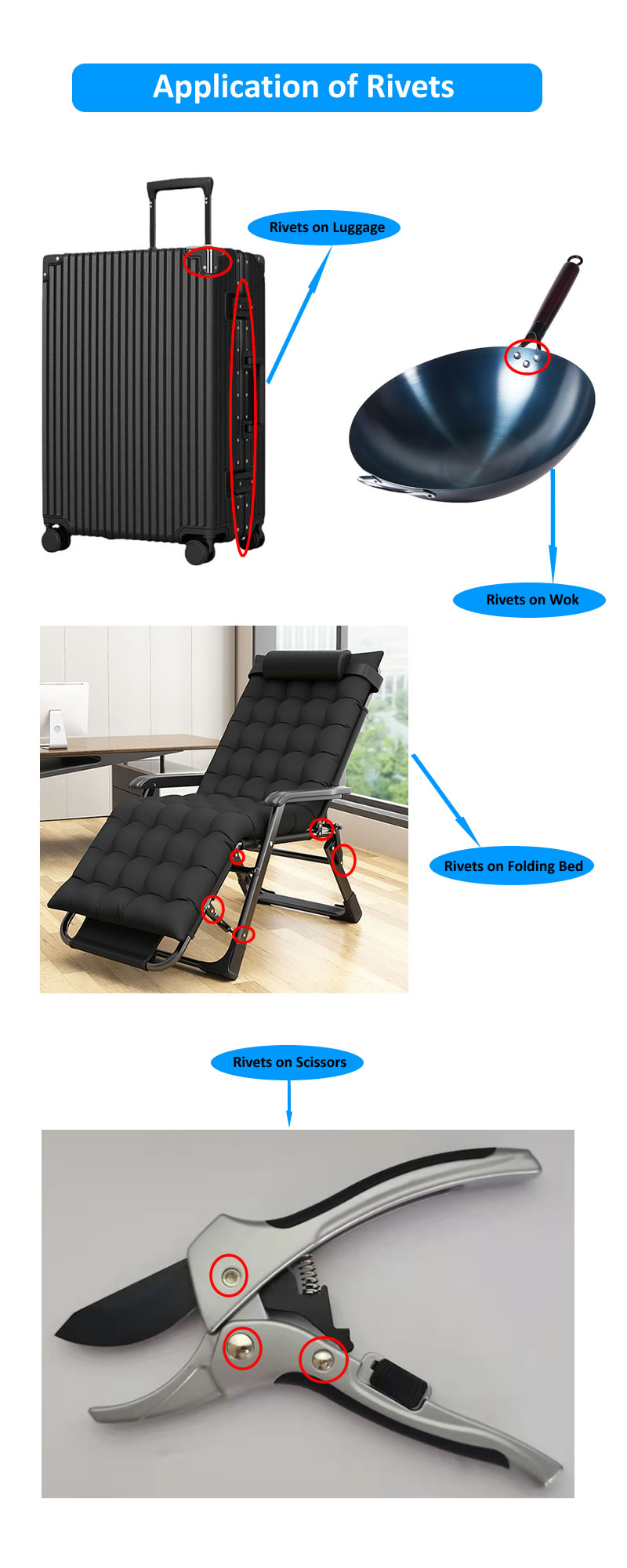 3. Alumiininiitit, mukaan lukien alumiiniset kiinteät niitit, alumiiniset puoliputkiniitit, alumiiniputkiniitit.